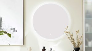 Der runde Wandspiegel überzeugt durch seine klare Formensprache und sein edles Erscheinungsbild. Mit einem Durchmesser von ca. 75 cm und einer Tiefe von ca. 3 cm wirkt er filigran und zugleich hochwertig. Das fest verbaute LED-Leuchtmittel (20 Watt) sorgt für gleichmäßige Ausleuchtung und ist in der Energieeffizienzklasse F (Spektrum A bis G) eingestuft.
